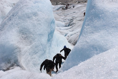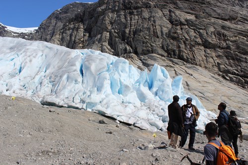The nature speaks for itself. The INDICE-group went for a walking tour on the Nigardsbreen glacier with two professional guides.