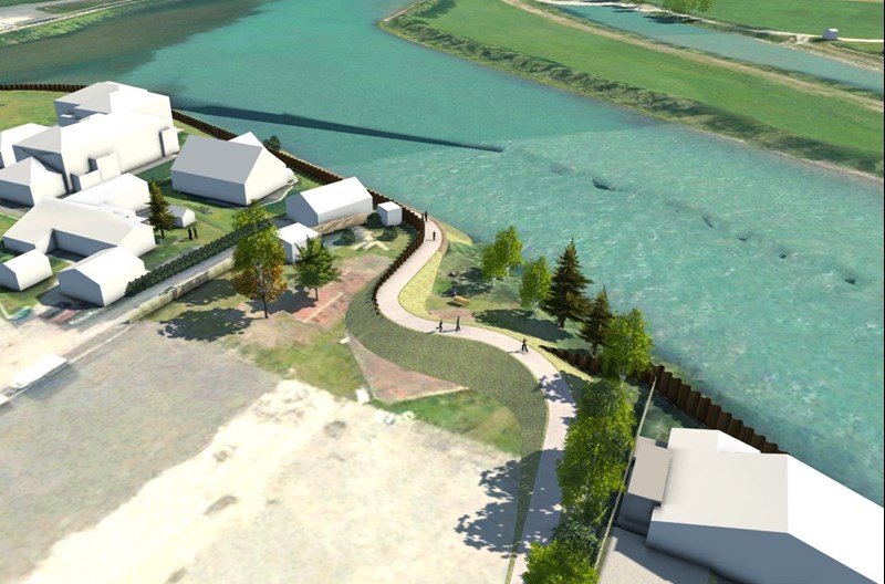 Visualiering av flomsikring langs Ottaelva. Foto: NVE / Norconsult